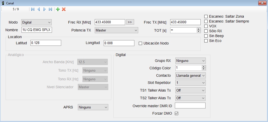 Ejemplo de configuración del canal 1U en codeplug para radios con OpenGD77.