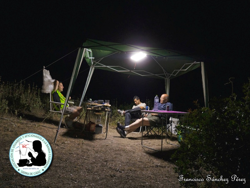 La tarde fue calurosa (37º C), con un viento flojo de levante y sudamos bien la instalación de las antenas, los equipos y la carpa bajo la que nos cobijamos llegada la noche, ya que refrescó bastante (17º C).