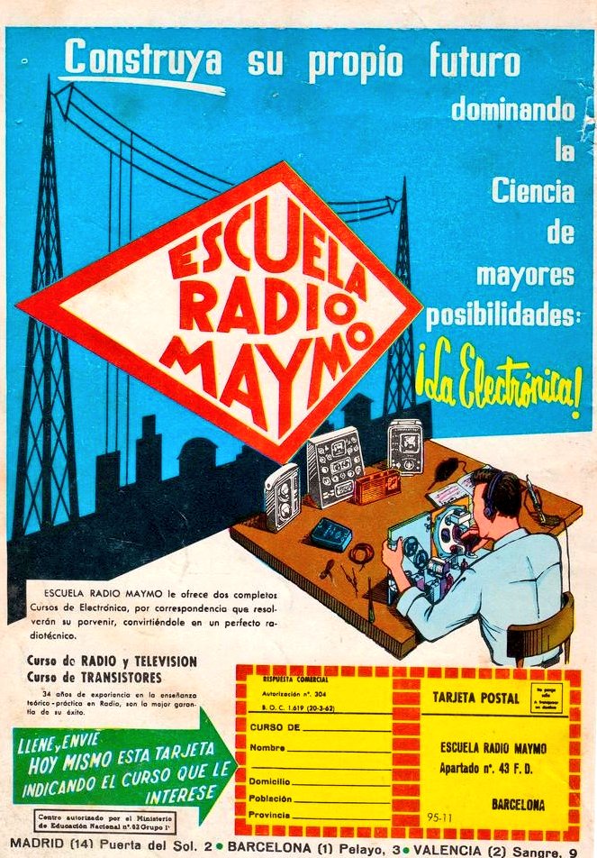 Tras finalizar el servicio militar obligatorio en aviación, se reincorpora a la tienda con su padre y en casa realiza reparaciones de aparatos de válvulas (cuerdas de dial, rectificadoras, condensadores, etc…). Años más tarde decide introducir en el negocio una línea de productos de electrónica y, sobre todo, de radio. Convivirán entonces en el mismo establecimiento, dividido en dos mitades, emisoras por un lado y ultramarinos por otro. Por aquellas fechas se acababa de legalizar el uso de la Banda Ciudadana en España.